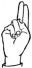 На ћирилици написано МИЛА ПАВИН састоји се из 9 слова [?]. Исписано ћириличном једноручном азбуком за глувонеме: